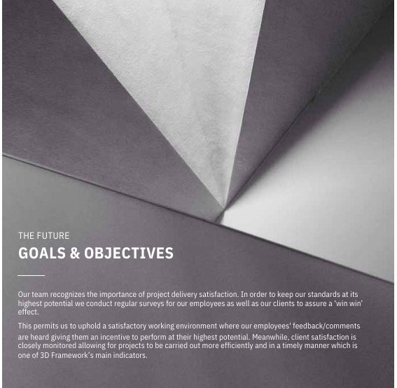 3D Framework has successfully delivered multiple high quality projects in the market on time and prides itself with providing services that meet client expectations. The manner by which we conduct our business is guided by our belief and commitment to the following core values: